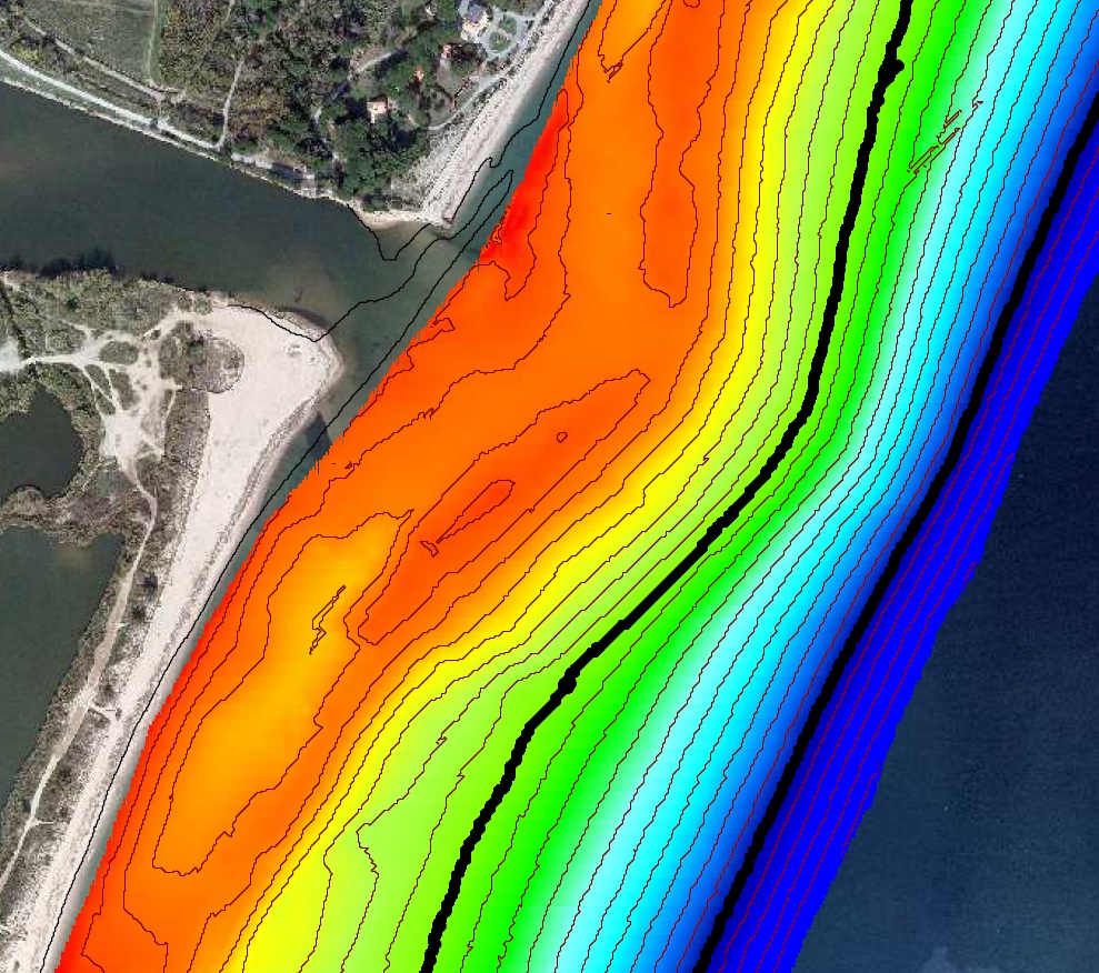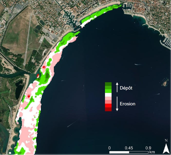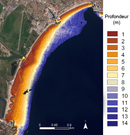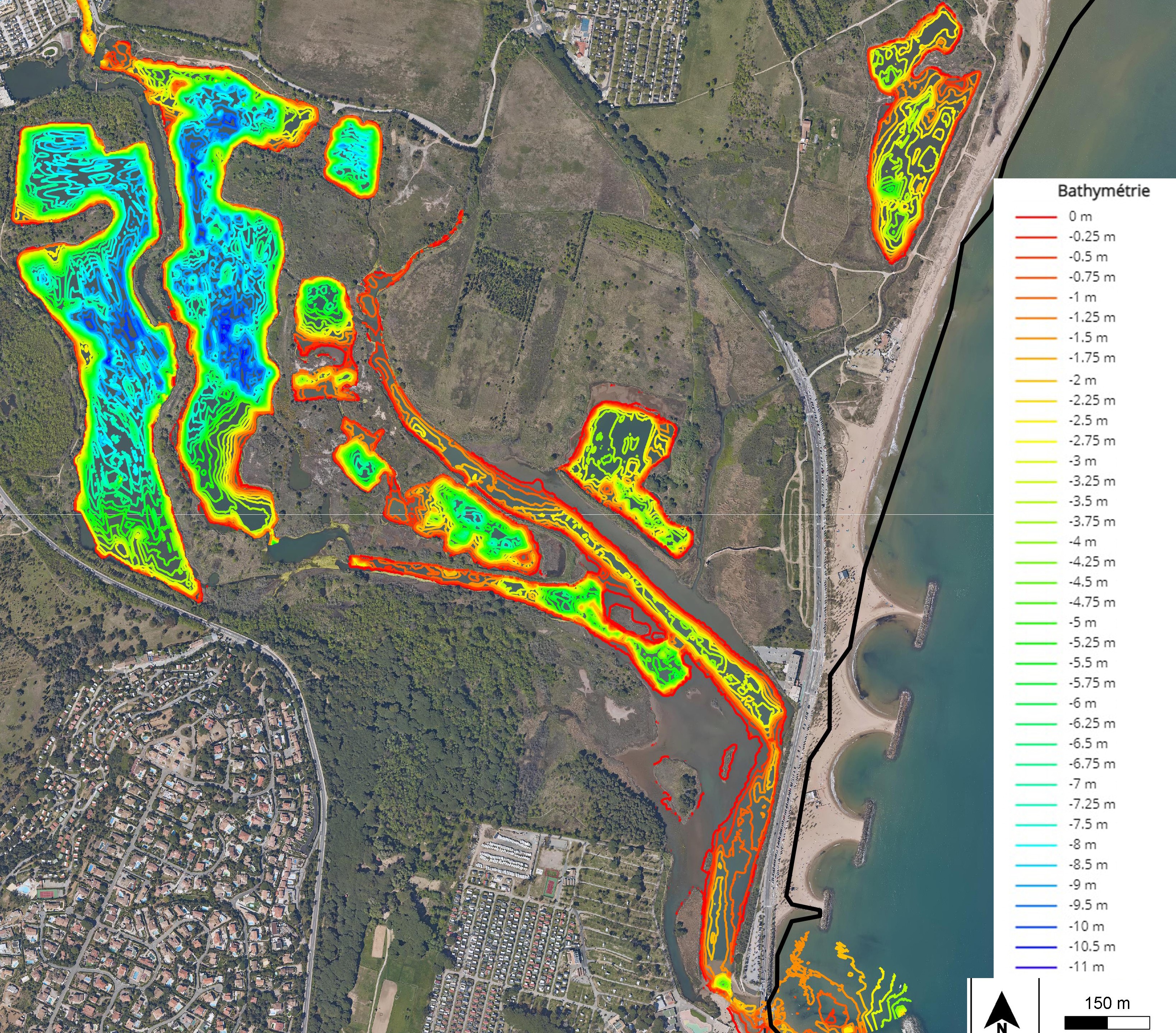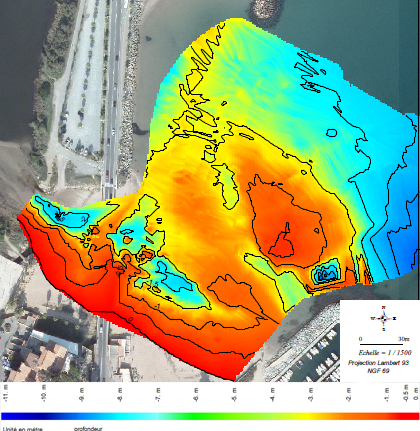 Ainsi, il a été possible d'exploiter ces données afin d'établir des cartographies de la bathymétrie et de visualiser les zones soumises à une érosion ou des dépôts sédimentaires.