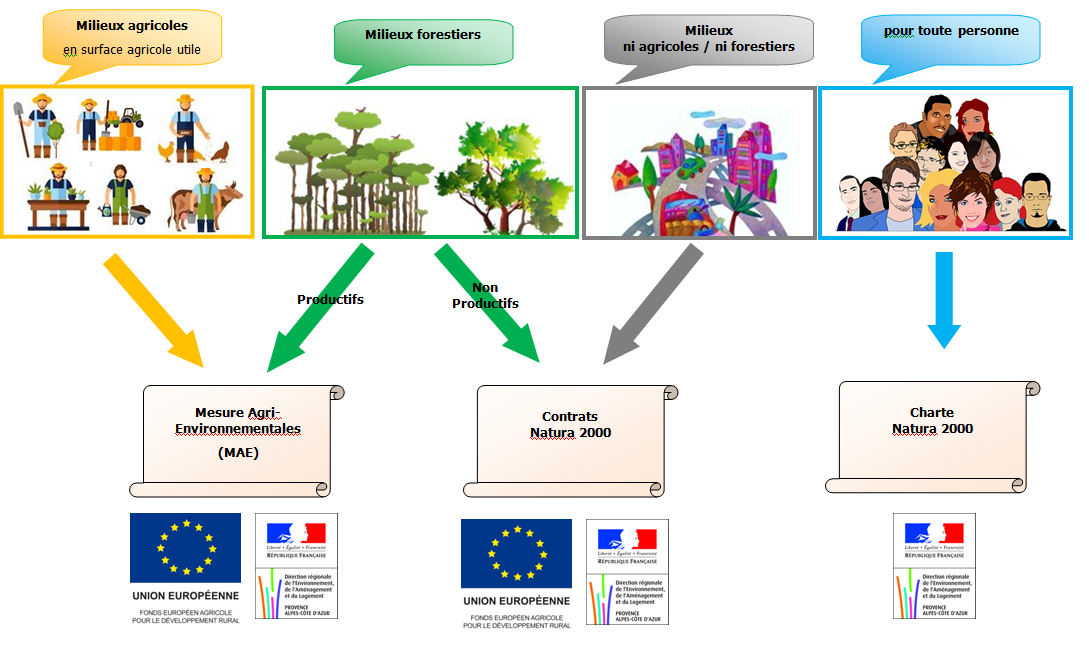 Cette rubrique vous présente ces trois différents outils Natura 2000 et vous donne quelques exemples possibles d'application.